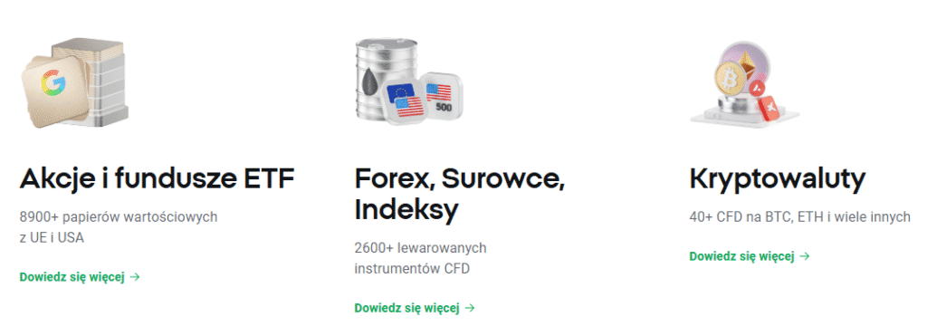 💡 XTB wyróżnia się jedną z najbardziej kompletnych ofert inwestycyjnych dostępnych u polskich brokerów. Dzięki temu możesz budować portfel w sposób, który najlepiej odpowiada twojej strategii – niezależnie od tego, czy stawiasz na długoterminowe inwestowanie, czy aktywny handel.