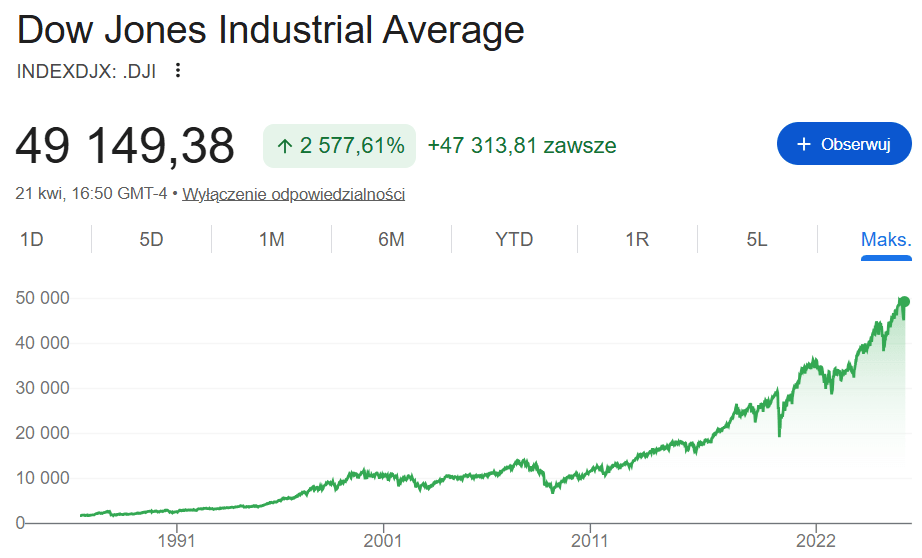 Warto wiedzieć, że w odróżnieniu od wielu innych indeksów, Dow Jones jest indeksem ważonym cenowo – oznacza to, że większy wpływ na jego wartość mają spółki z wyższą ceną akcji, a nie te o największej kapitalizacji rynkowej. To jedna z cech, która odróżnia go od indeksu S&P 500 czy NASDAQ 100.
