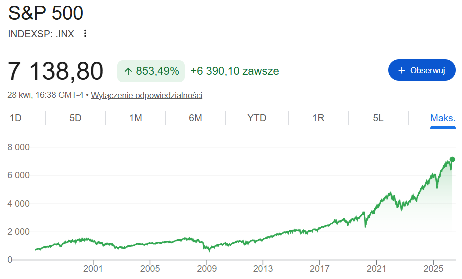 Amerykański indeks szerokiego rynku S&P 500 był jednym z pierwszych i najbardziej dotkniętych ofiar rosnącego VIX. Paniczna wyprzedaż wywołana nową polityką handlową Białego Domu sprawiła, że kurs S&P 500 spadł z poziomu 6147 punktów do 5408 punktów, notując ponad 12-procentową korektę. Był to jeden z najgłębszych i najszybszych spadków od czasu krachu covidowego w 2020 roku.