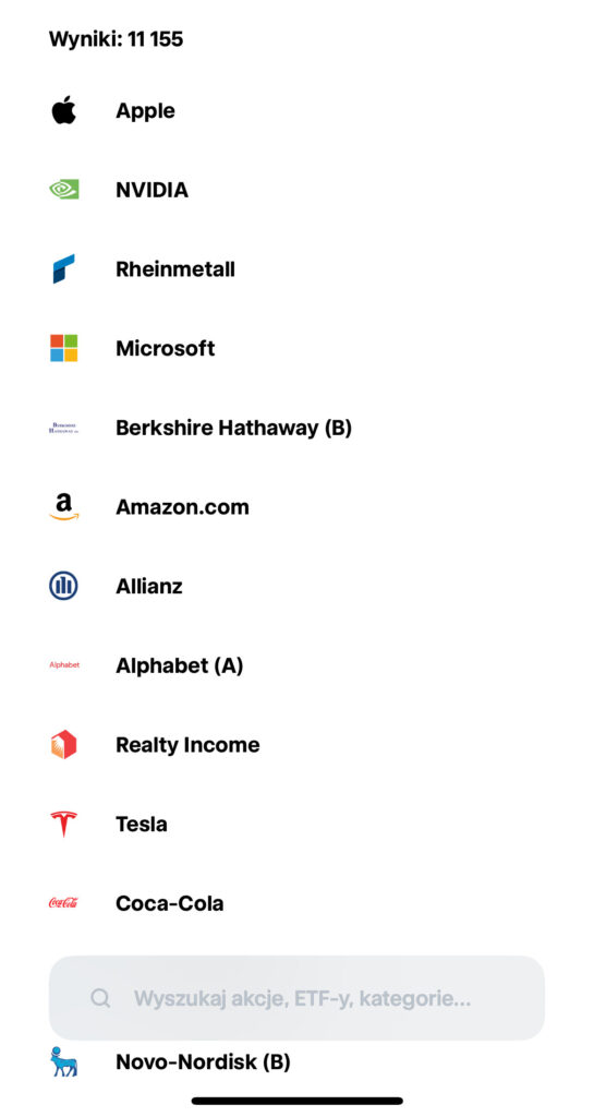 Na platformie dostępnych jest około 100 najaktywniej handlowanych spółek z GPW, które znajdują się w ofercie Trade Republic dla klientów w Polsce. To nie kompletny katalog wszystkich walorów notowanych w Warszawie, ale solidna reprezentacja największych i najbardziej płynnych firm. Dla porównania: XTB oferuje zdecydowanie szerszy zakres polskich spółek.