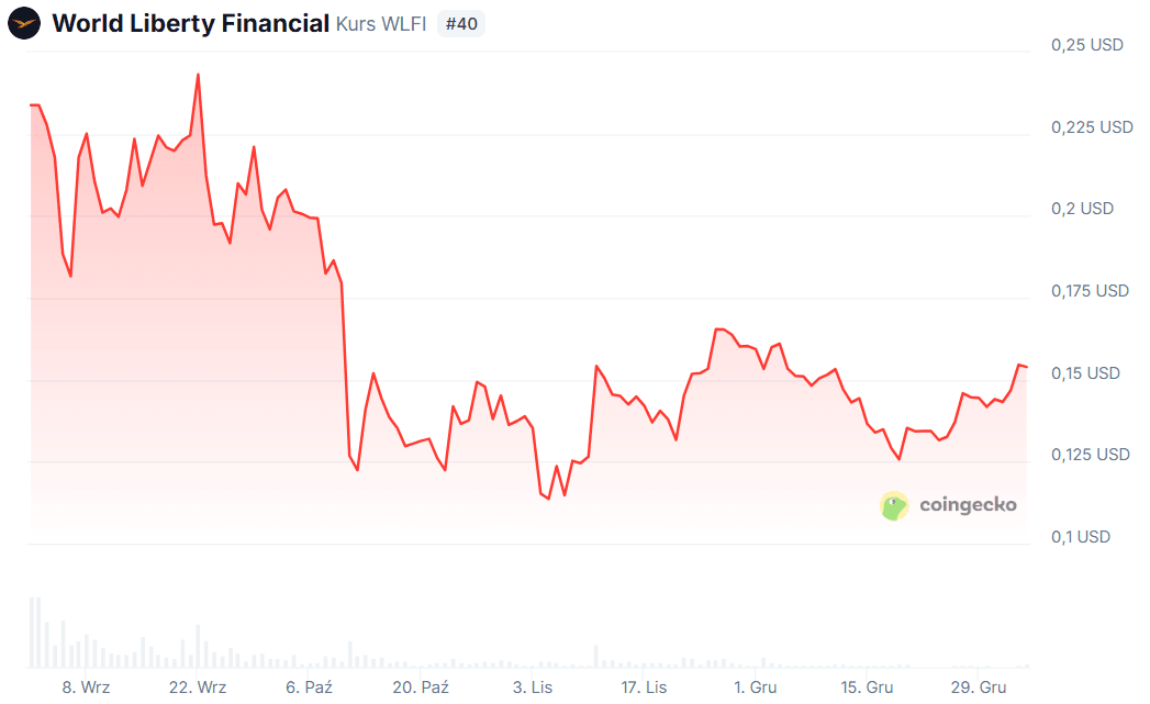 1 września 2025 roku zadebiutowała kryptowaluta WLFI. W porównaniu do poprzednich, a więc TRUMP i MELANIA nie jest to memecoin. To token, który od szczytu spadł o 34%.