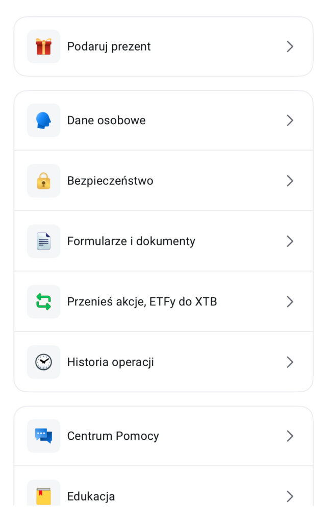 To funkcja, która dostępna jest tylko w aplikacji mobilnej XTB. W edycji konta znajdziesz zakładkę “Podaruj prezent”. Co dalej? Wystarczy postępować zgodnie z kolejnymi komunikatami XTB. Czyli? Należy z dostępnych akcji wybrać te, które chcesz przekazać, a następnie wpisać kwotę prezentu. To pozwoli wygenerować ci specjalny link.