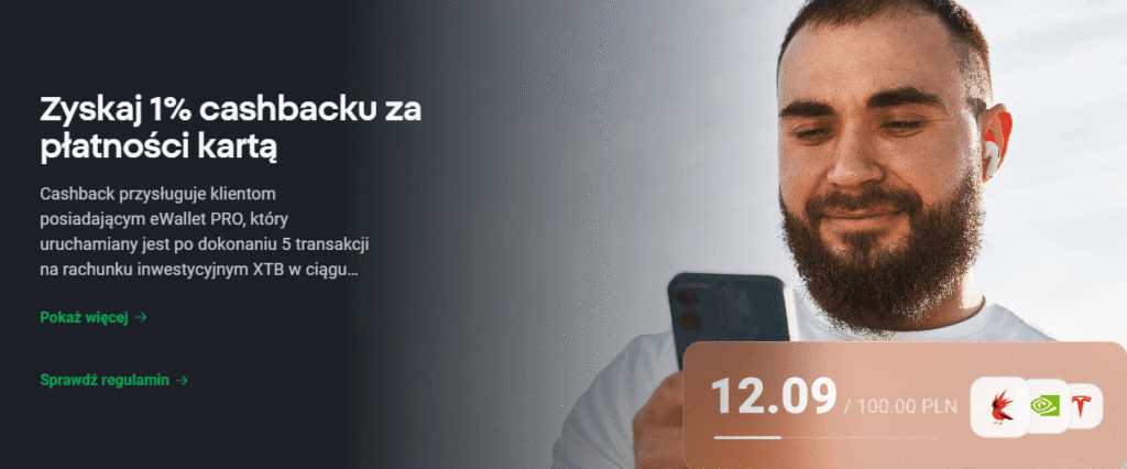 Cashback XTB: 1% do 100 zł (co 30 dni)